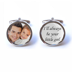 Dress in style with these custom Father of the Bride, I loved her first cufflinks.These cufflinks are made using high quality silver plated settings and a resin seal. They also come in a stylish gift box.