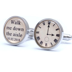 The date of the wedding will go under the Father of the Bride cufflink and the D.O.B will go under the I loved first cufflink.